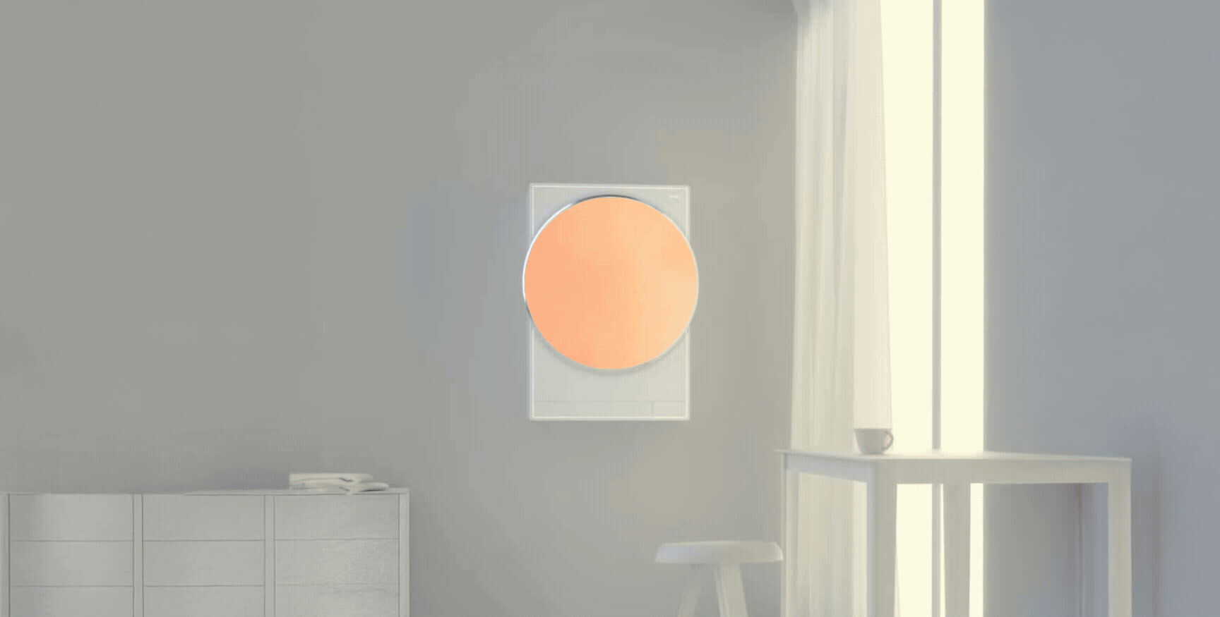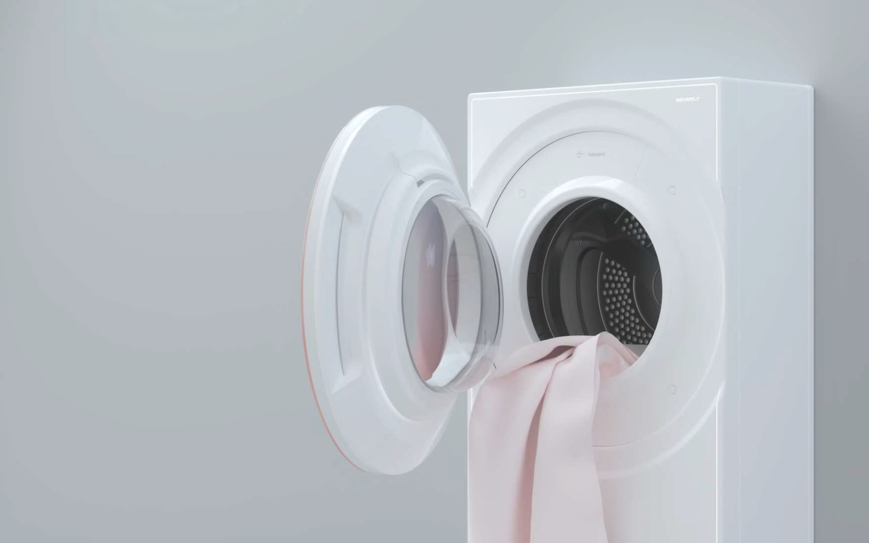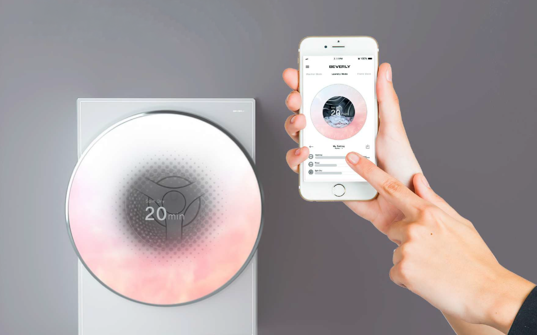 Future sophistication, familiarity, comfortThe wall-mounted washing machine serves as a familiar yet sophisticated object in our home, helping us experience comfortable laundry.